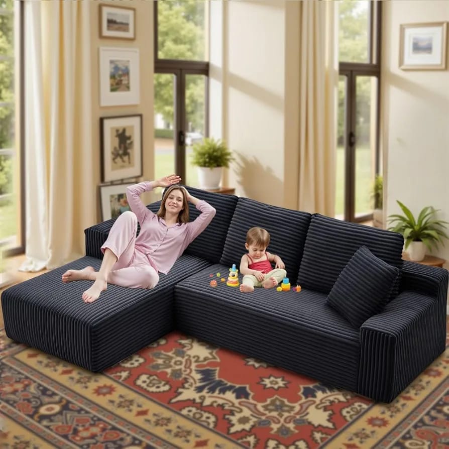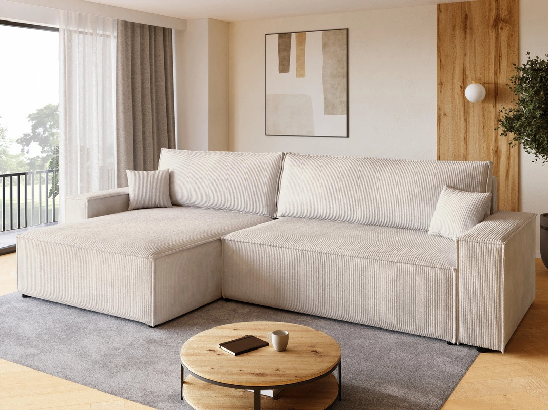 Transform your living space with this versatile corner sofa that seamlessly combines contemporary style with practical functionality. Upholstered in luxurious corduroy fabric, this piece is designed to be the centerpiece of your modern home.
