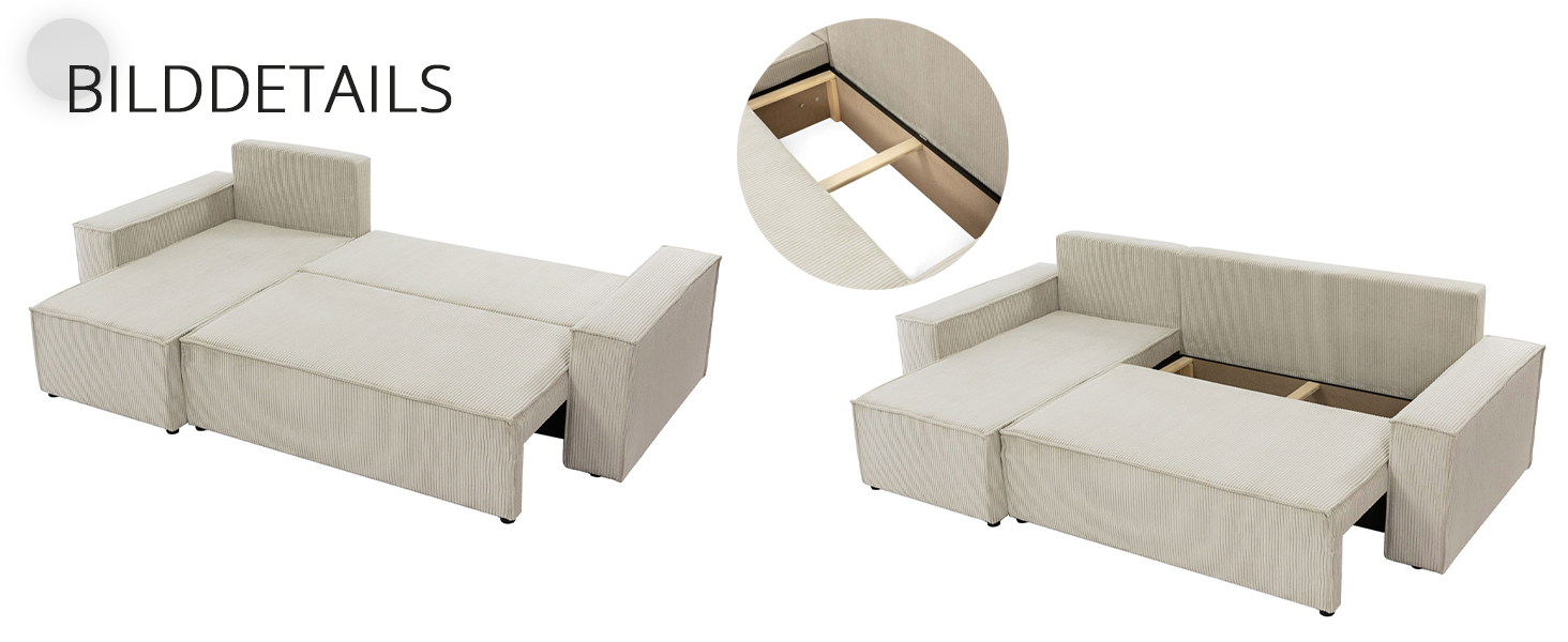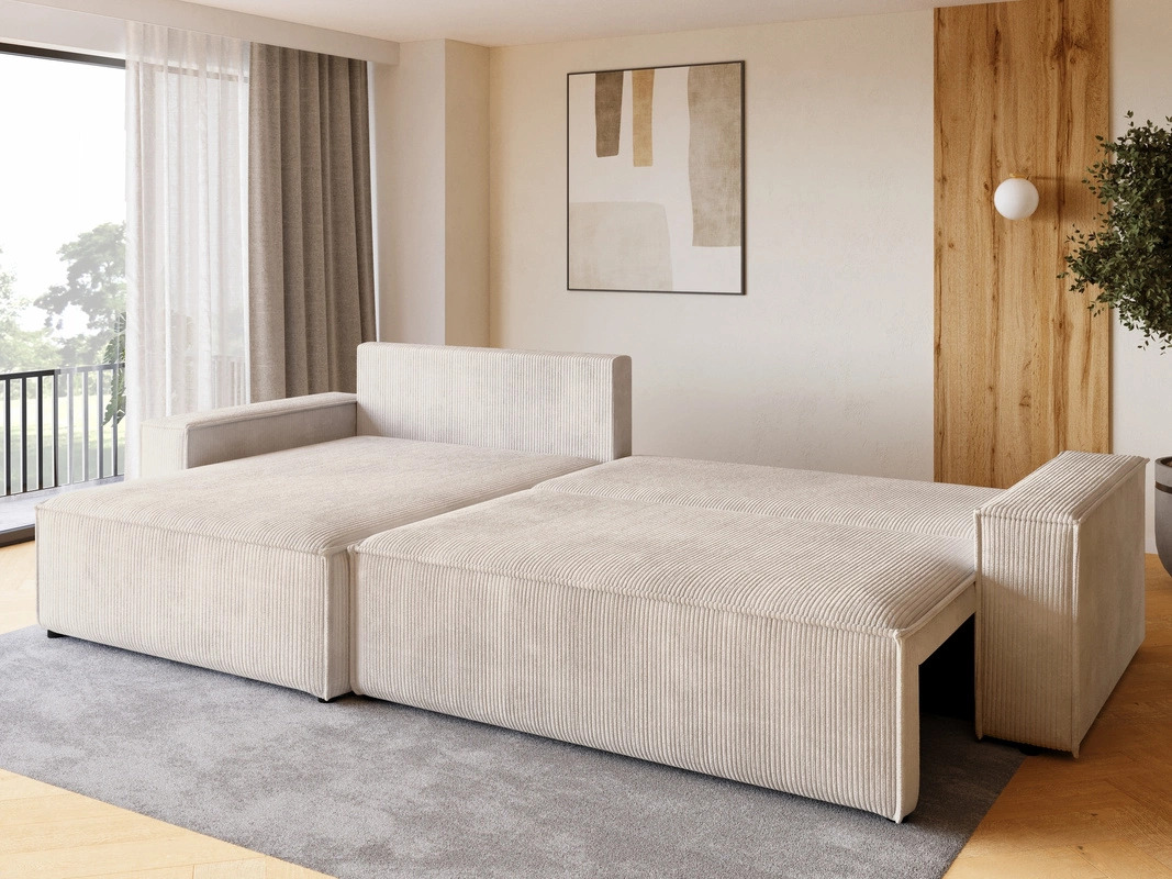 Corner Sofa in Corduroy Fabric with Sleeping Function