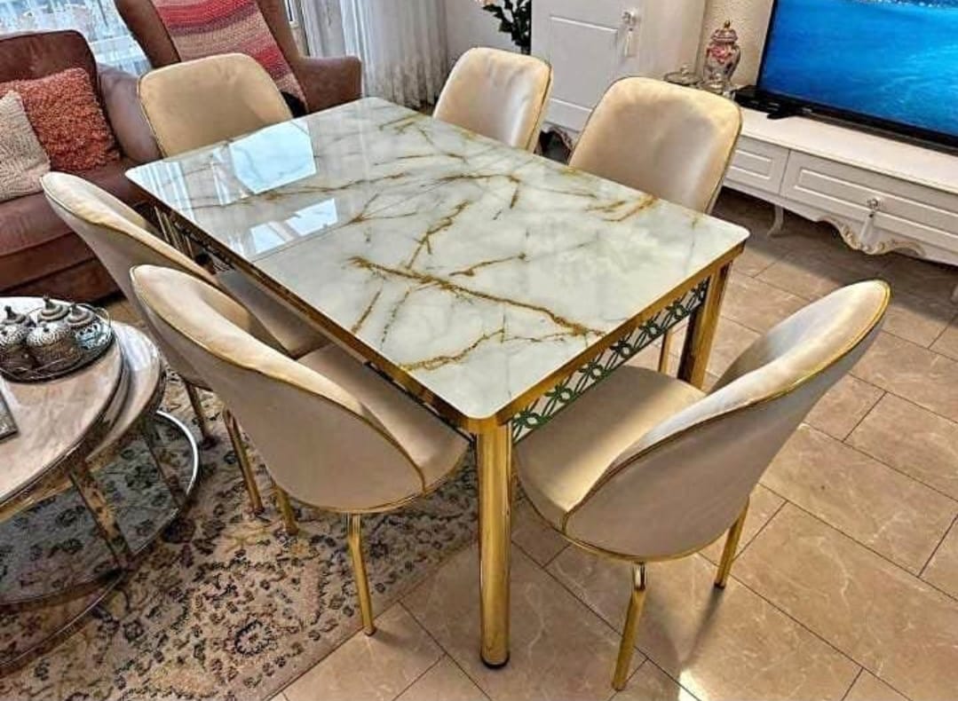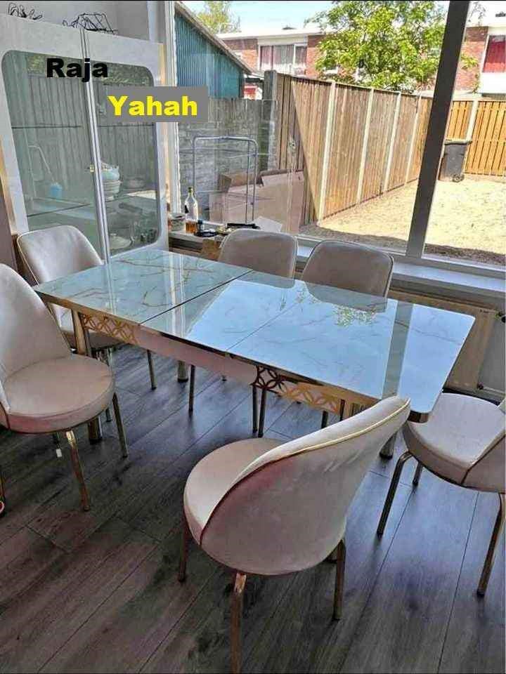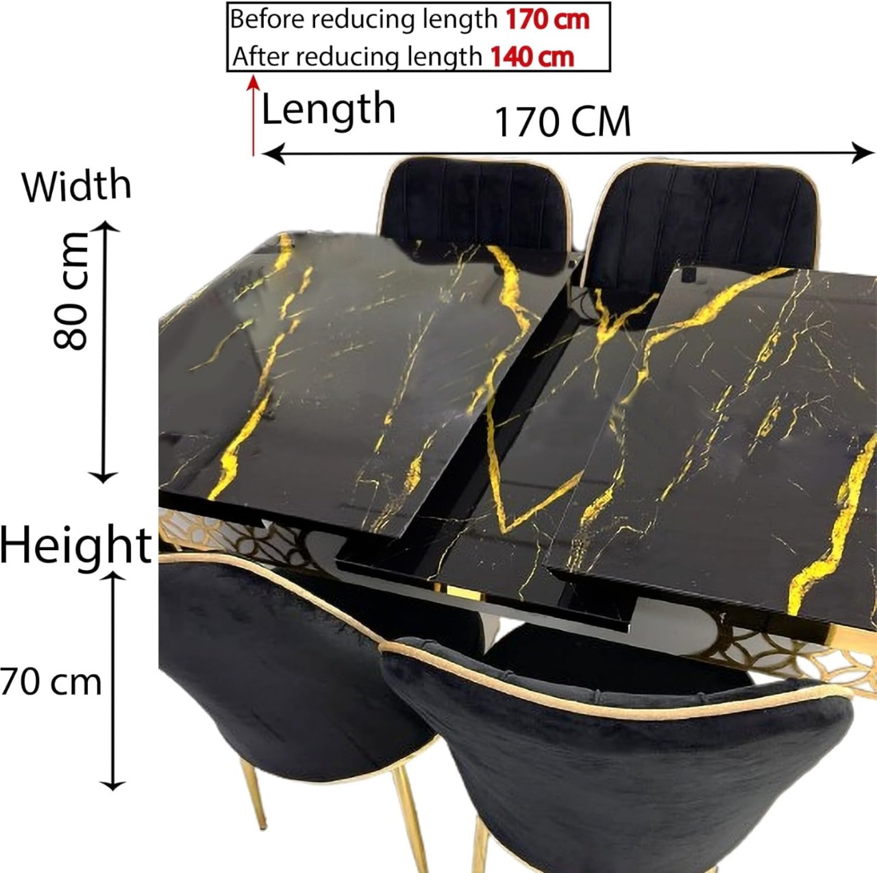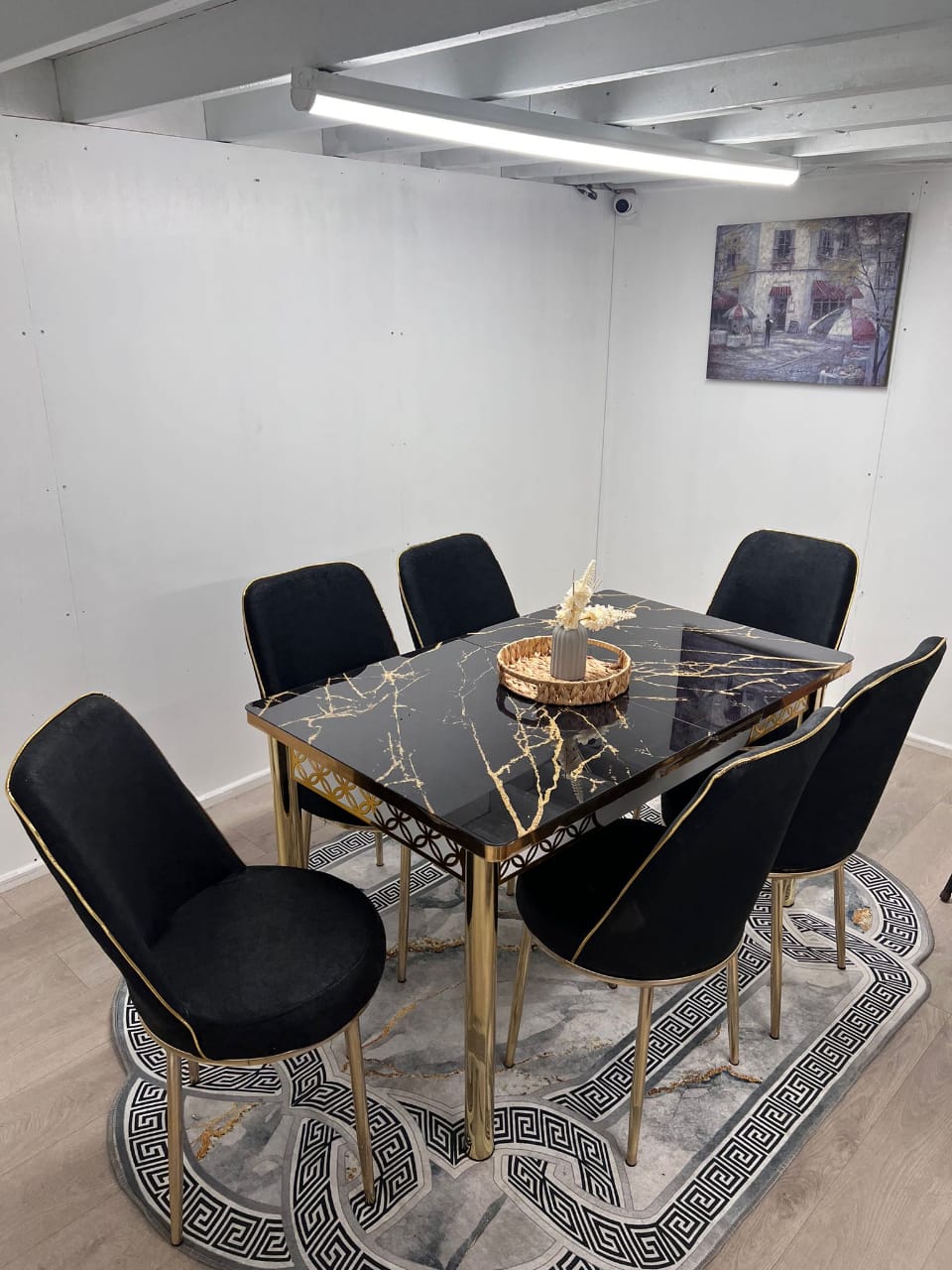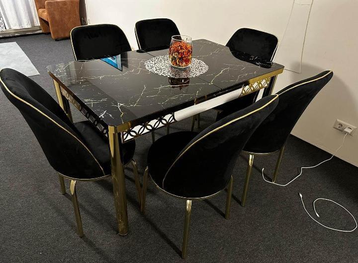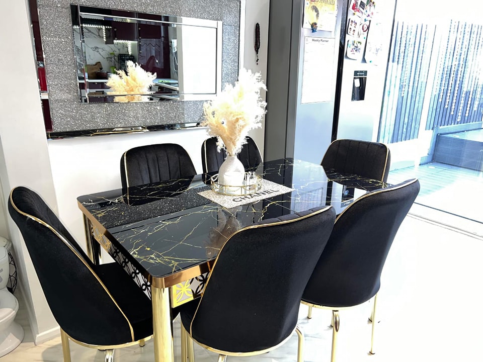 This luxury dining set combines a clean, modern profile with practical everyday use. Designed for both compact dining and extended seating, the table adapts easily to different space and guest requirements.