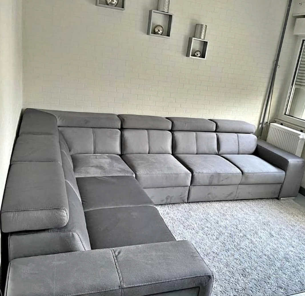 Perfect for large living rooms and families, this spacious 7-seater corner sofa combines contemporary design with exceptional comfort. Available in sophisticated Black and Grey fabric finishes.